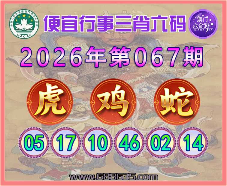 067期: 便宜行事 🍏三肖六码🍏【鸡蛇】开:虎05